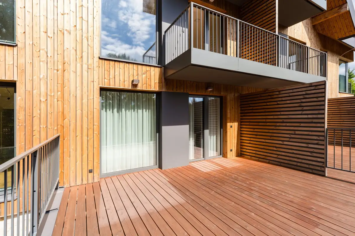 All apartments have balconies or terraces with views of the surrounding mountain peaks and the countryside around the house. Each apartment has a storage room or cellar and parking in the garage of the house or in the private outdoor parking lot next to the house. On the ground floor of the residence is a shared luxury spa with sauna and jacuzzi and a fully equipped fitness room for strength and conditioning training.
