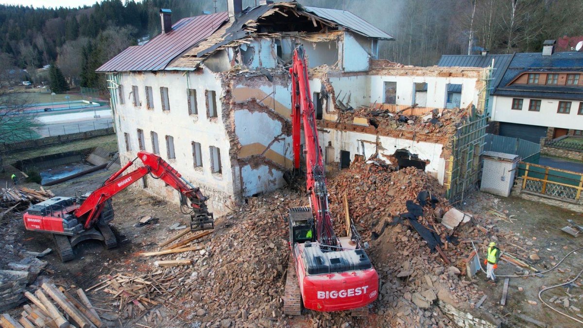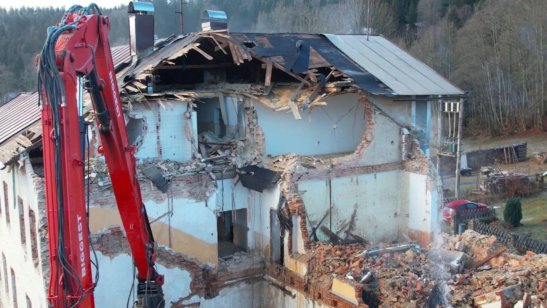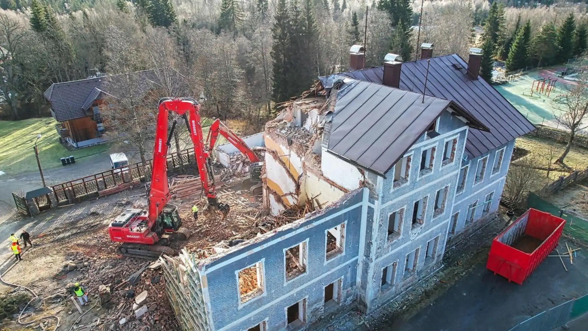 The original structure has already been removed, the remaining building material is currently being processed and preparations for excavation of the pit are underway.