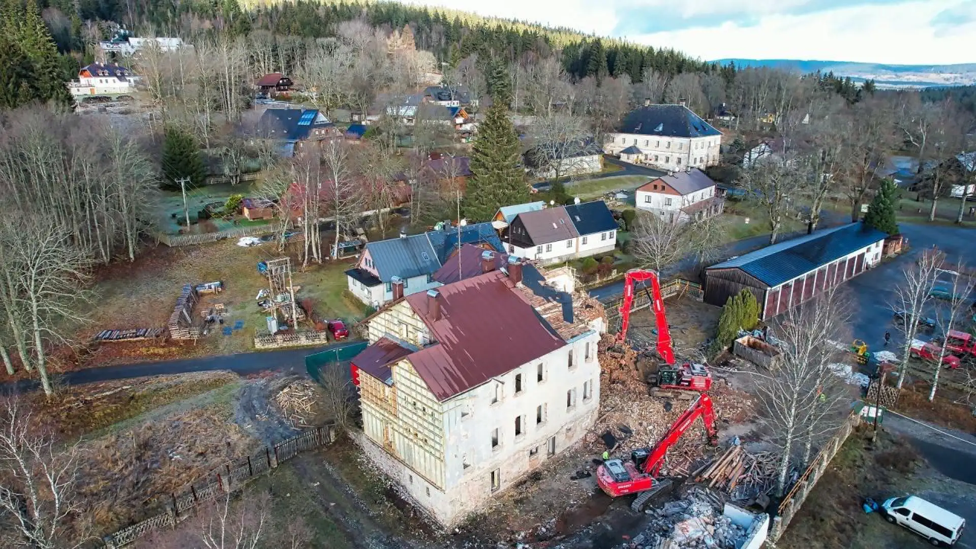 Demolition of the original building has been completed. Historically the building served as a school, during socialism it was a military company. After the revolution it was only partly used by the Police of the Czech Republic. The state was not interested in the property and so the building passed into private hands. The owner set up accommodation of a more modest nature. Now a completely new era is dawning. The Laka Living project is coming to fruition.