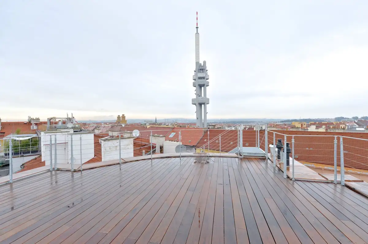 We offer for rent apartment 2+kt with usable area of 60 sqm with stunning terraces of 60 sqm and 40 sqm on the 6th floor of a historic apartment building with elevator in a lucrative and quiet location of Prague Vinohrady. The whole house has been sensitively renovated, the original Art Nouveau style elements have been preserved. For an additional fee of CZK 7.550 excluding VAT per month it is possible to rent a parking space.