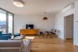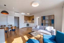 We offer for rent a fully furnished 2+kt apartment with a terrace with a total usable area of 72 m2 on the 4th floor of a new residential project with an elevator and a number of above-standard additional services such as a reception, swimming pool, wellness center, and a large shared garden in an enclosed courtyard. For an additional fee, you can rent a parking space in the underground garage.