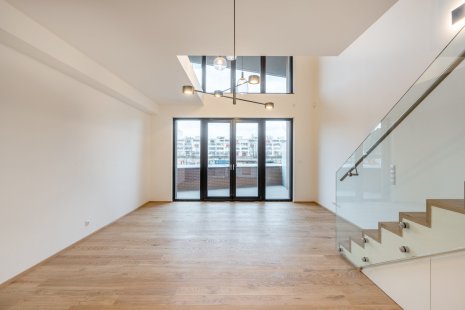 We offer for rent a modern 2+kk duplex apartment with a usable area of 73 m² in the new Prague Marina Nova building, Prague 7 - Holešovice. The apartment is located on the 1st floor of the residential project and includes a terrace with a view of the river, a cellar, and a garage parking space, which is included in the price.