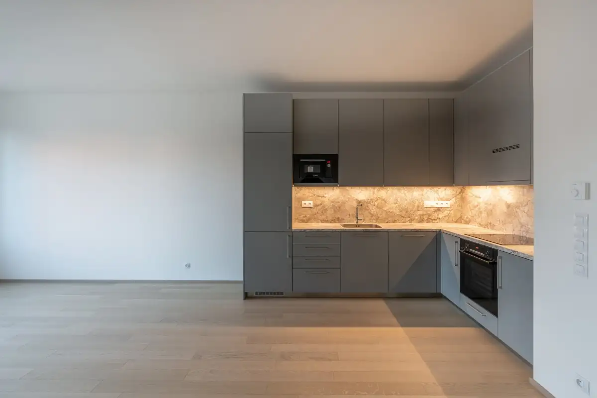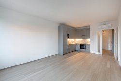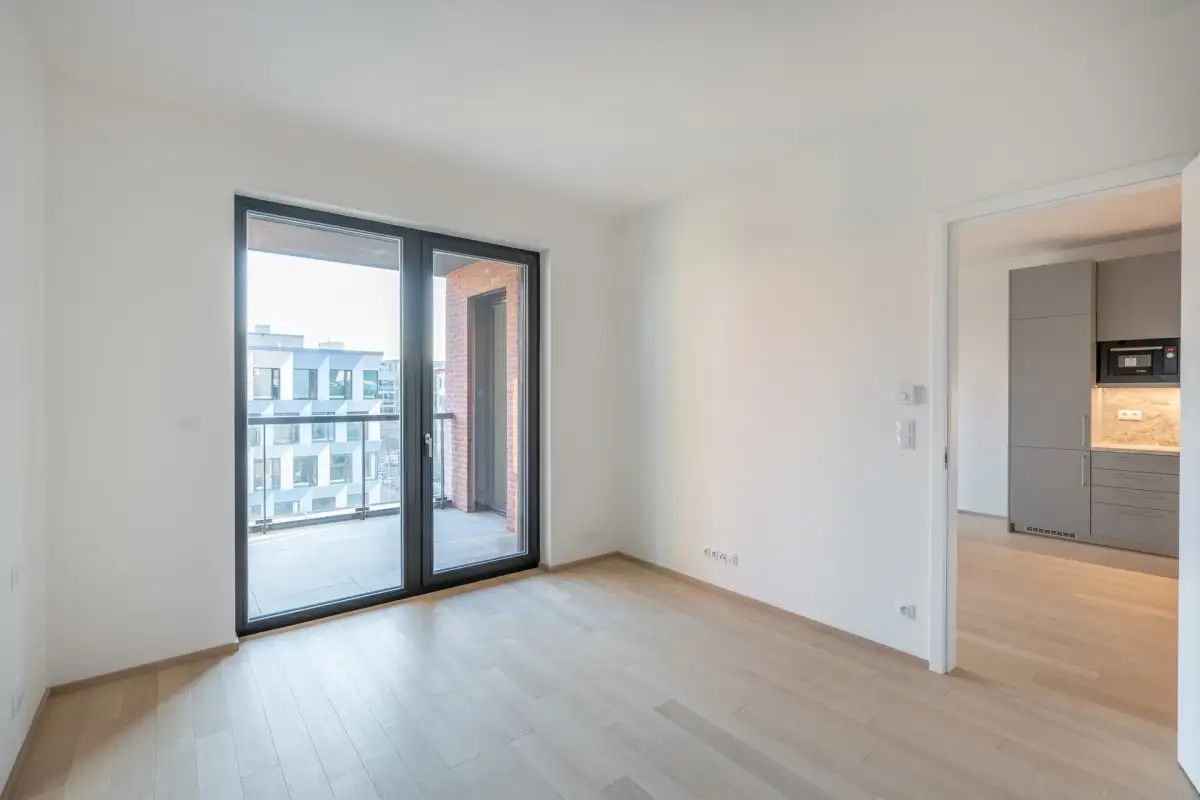 We offer for rent a modern 2+kk apartment with a floor area of 63 m² in the new Prague Marina Nova building, Prague 7 - Holešovice. The apartment is located on the 4th floor of a residential project with an elevator, and includes a terrace with a view, a cellar, and a garage parking space, which is included in the price.