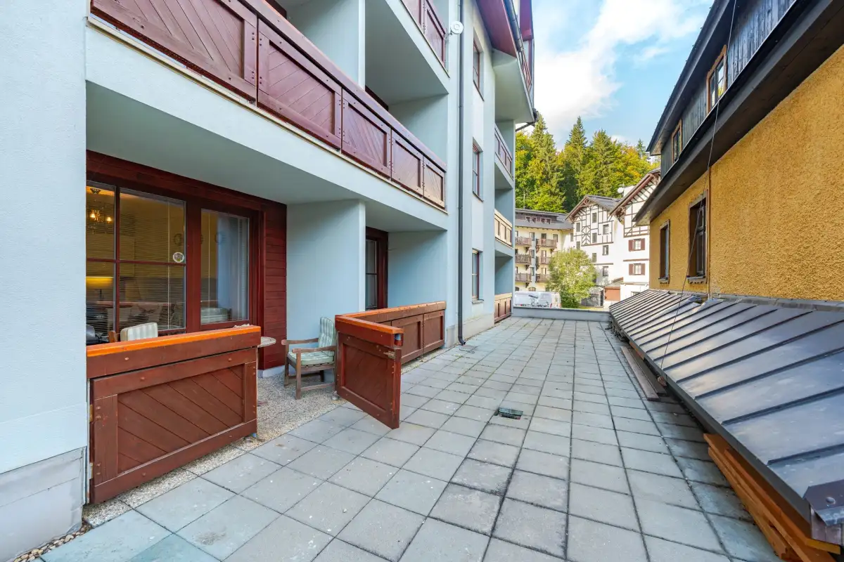 We offer for long term rent a fully furnished apartment 2+kt with a usable area of 50 sqm on the 2nd floor of an apartment house located in the very centre of Spindleruv Mlyn next to the popular hotel Savoy. It includes a parking space in the underground garage and a cellar.