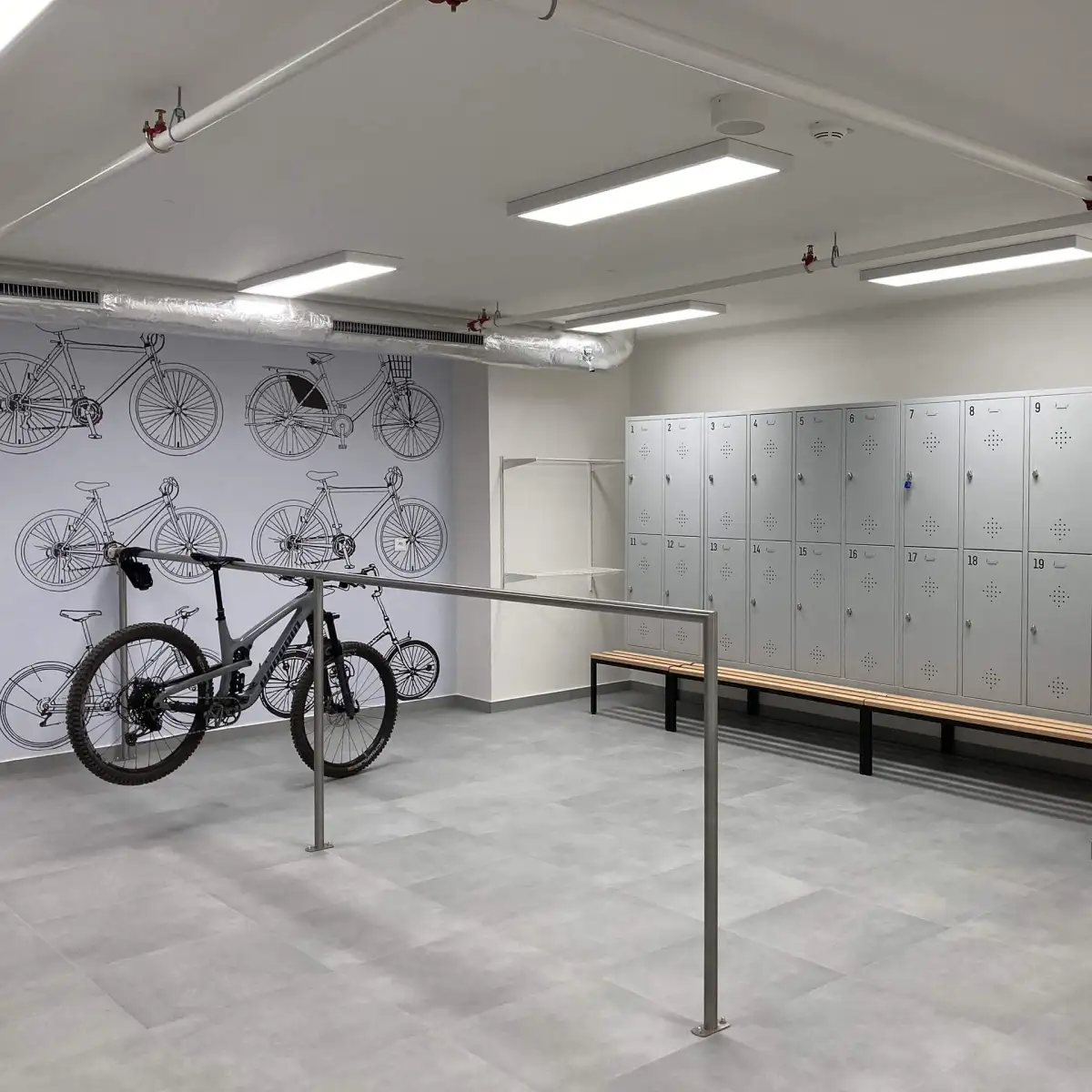 Tenants have 24 hour security service, security and central reception, smoke detectors, internet, internal blinds, fibre optics, opening windows and sprinklers. Access works with magnetic cards.