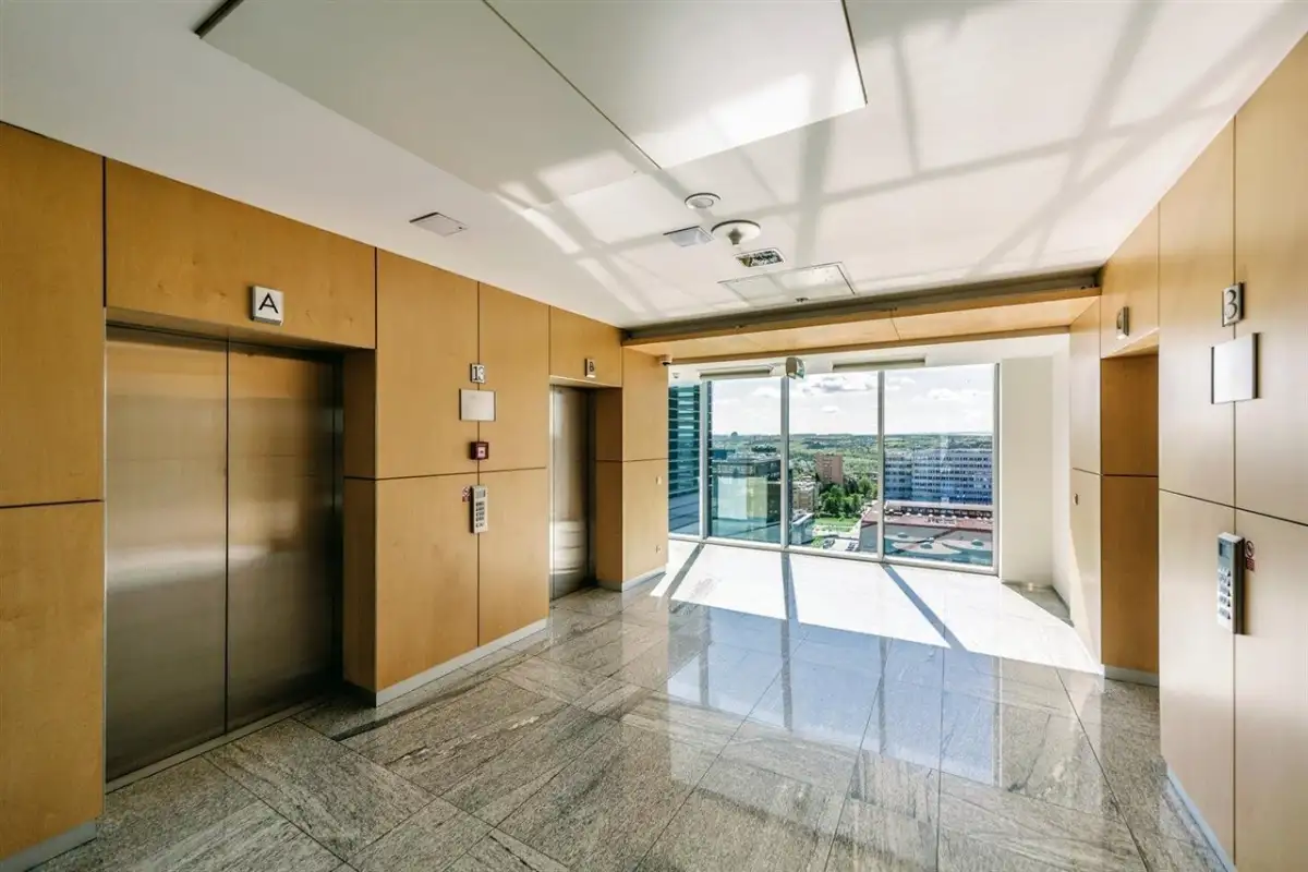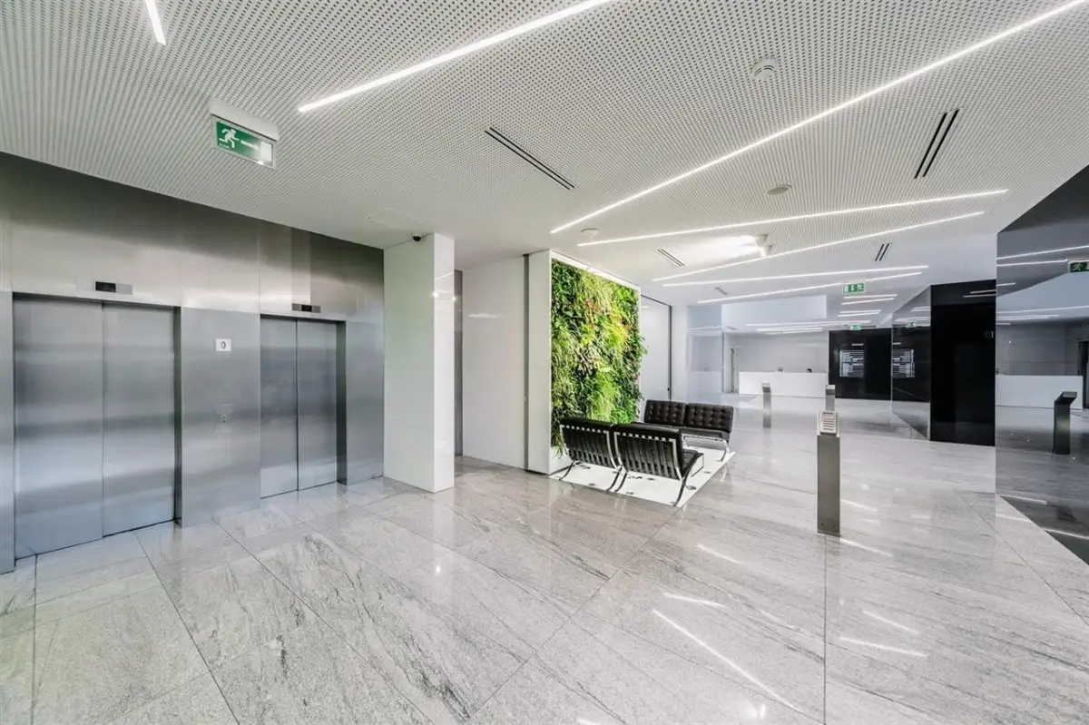 The unit is equipped with air conditioning, heating, carpeting, security equipment, modern lighting, electricity connections and internet connection. Toilets are shared in the corridor and on each floor. The interiors are spacious and well-lit, creating an ideal working environment for your employees.