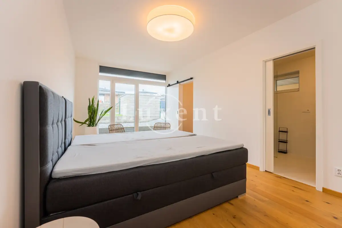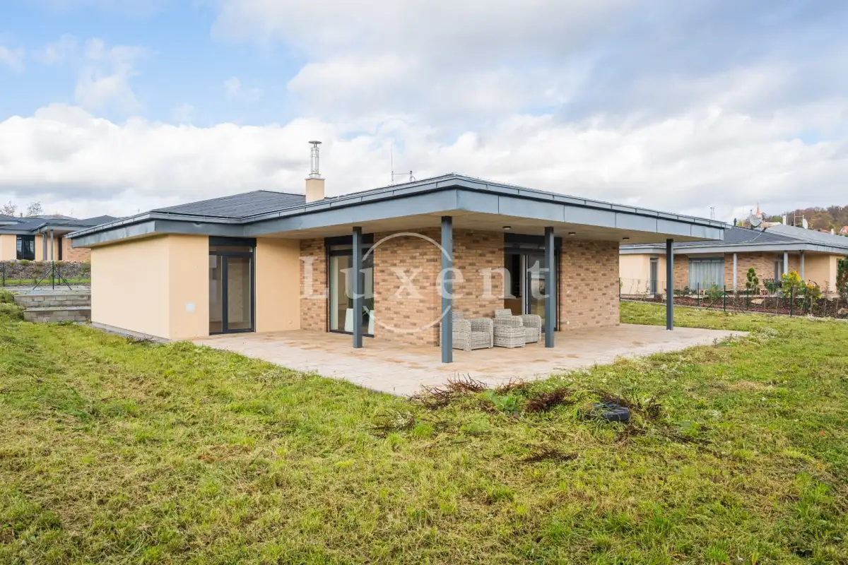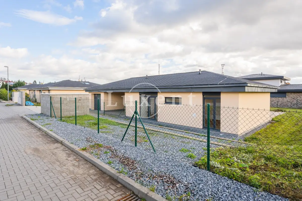 We offer for rent a partly equipped newly built modern house with a layout of 4+kt and usable area of 206 sqm in a desirable location of the town of Pyšely, district Benešov u Prahy. The one-storey low-energy house has its own garden of 1 144 sqm with a terrace and seating area. Garage for one car, possibility of two more parking spaces in front of the garage.