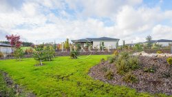 A grass carpet is planned to be laid over the whole garden in spring 2023, including planting of mature trees, as suggested by the gardener.