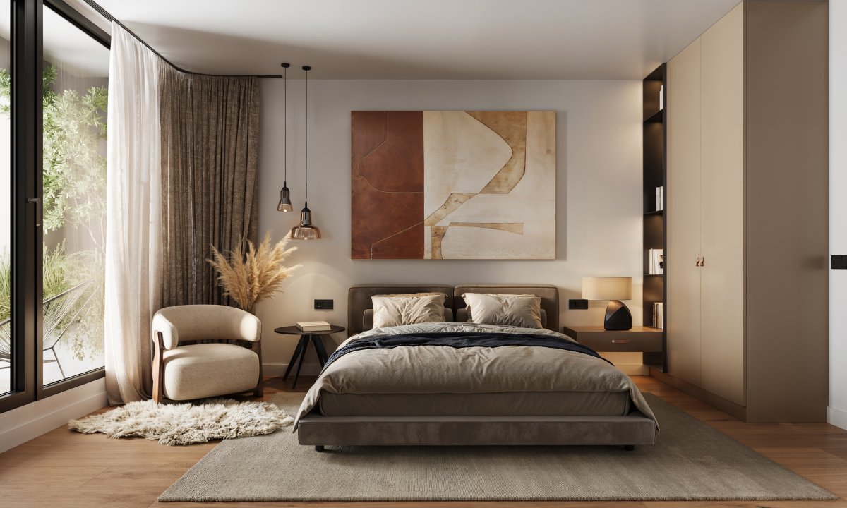 The apartments are equipped with high-quality furnishings and tastefully color-coordinated. The interior walls of the apartments are brick, the floors are Rigid Acoustic vinyl with an ultra-realistic Bostoniam Oak Honey design, integrated acoustic underlay, and Protecshield protective layer for increased damage resistance. The windows are anthracite-colored plastic with insulated triple glazing. Rectified Italian Sintesi tiles ensure easy maintenance of bathrooms, and the terraces are designed with non-slip, frost-resistant Arenis finesa ceramic tiles on pedestals.