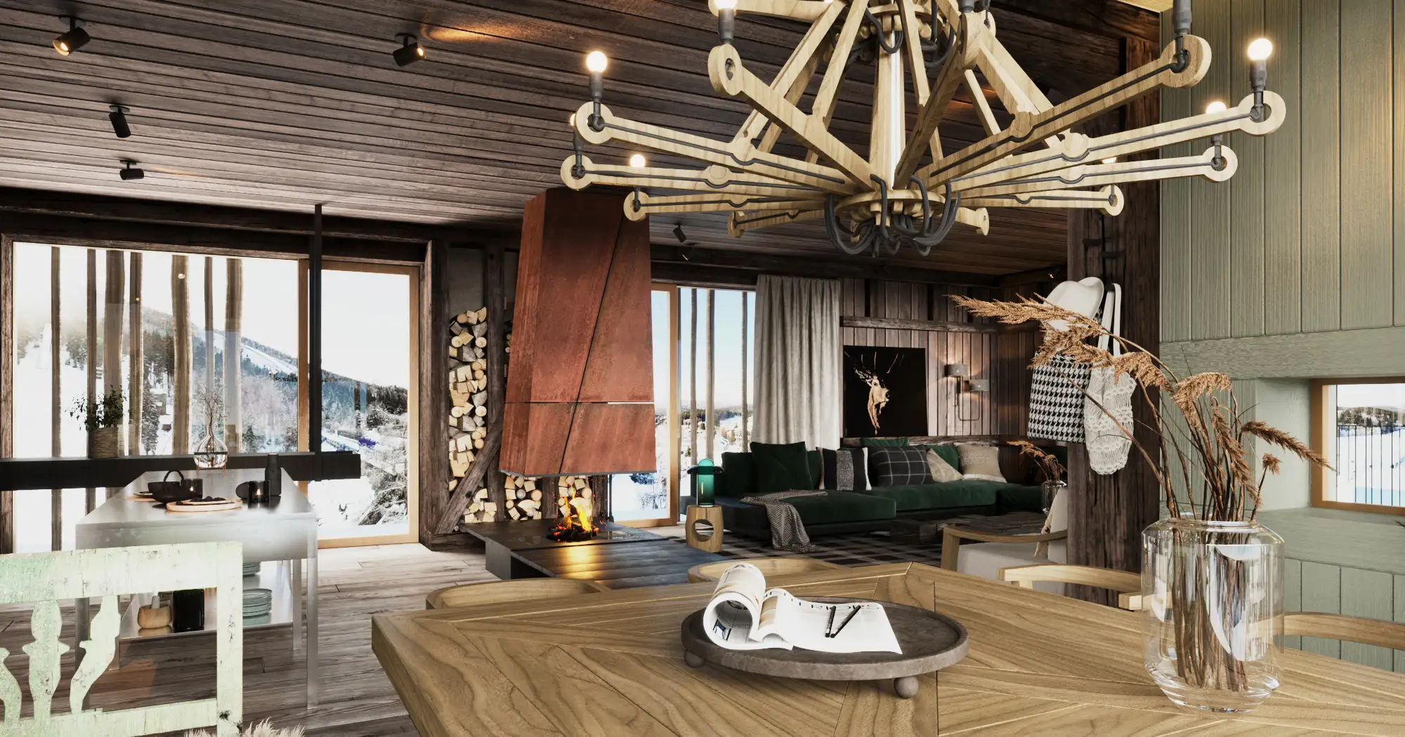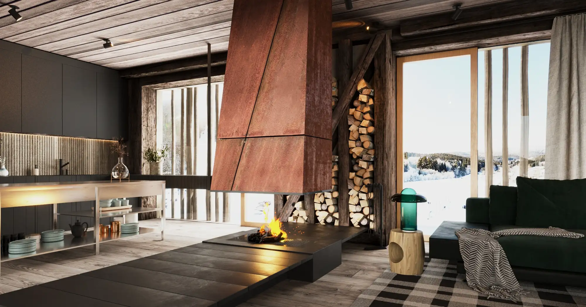 Kuchyně s krbem