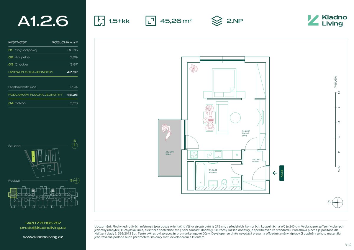 | KL-A126 | 1 + kitchenette | 1st floor | 43 m2 | 45 m2 | No / 6 m2 / No | No | Reserved | Detail |