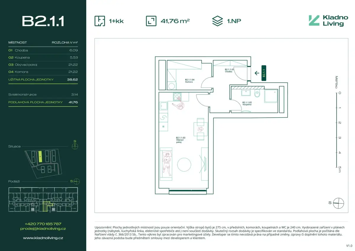 We are offering for sale a modern apartment 1+kt with a floor area of 41,8 sqm in the Kladno Living residential project, which is being built in one of the most attractive locations in the city of Kladno – Kročehlavy. This new development project represents a unique opportunity for those looking for new apartments in Kladno or an investment in real estate with high appreciation potential.