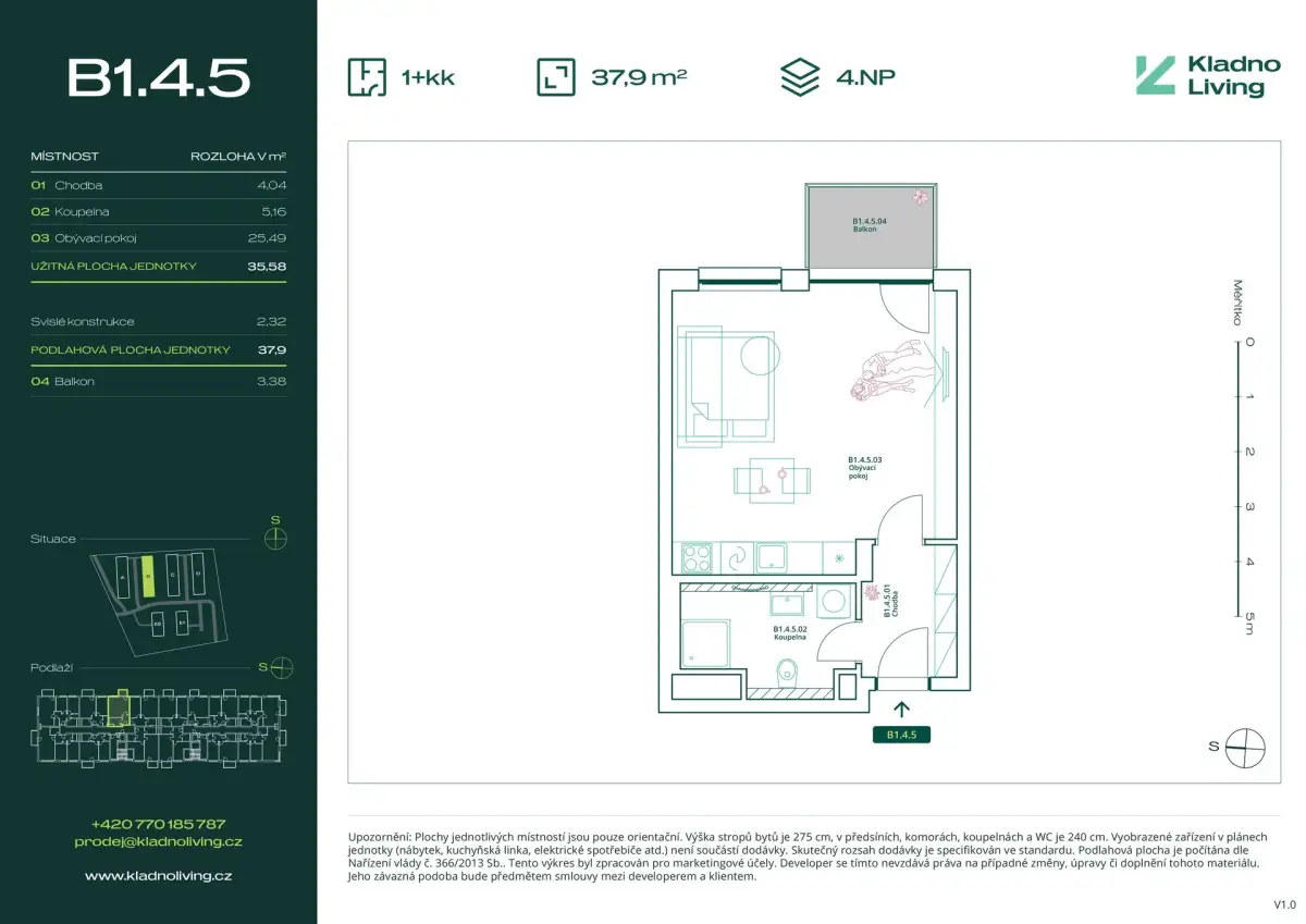 We are offering for sale a modern apartment 1+kk with a floor area of 37,9 sqm and a balcony of 3,4 sqm in the Kladno Living residential project, which is being built in one of the most attractive locations in the city of Kladno – Kročehlavy. This new development project represents a unique opportunity for those looking for new apartments in Kladno or an investment in real estate with high appreciation potential.