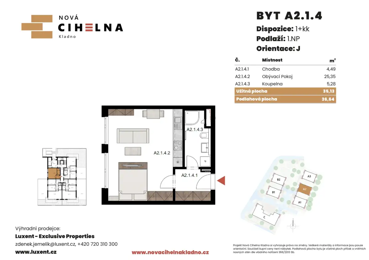 | NC-C211 | 1 + kitchenette | 1st floor | 35 m2 | 36 m2 | No / No / No | No | Reserved | Detail |