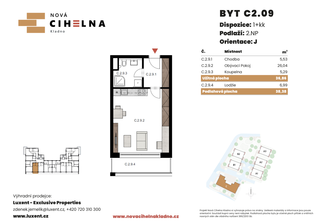 | NC-C209 | 1 + kitchenette | 1st floor | 37 m2 | 38 m2 | No / No / 7 m2 | No | 4 672 310 CZK | Detail |
