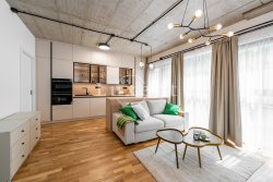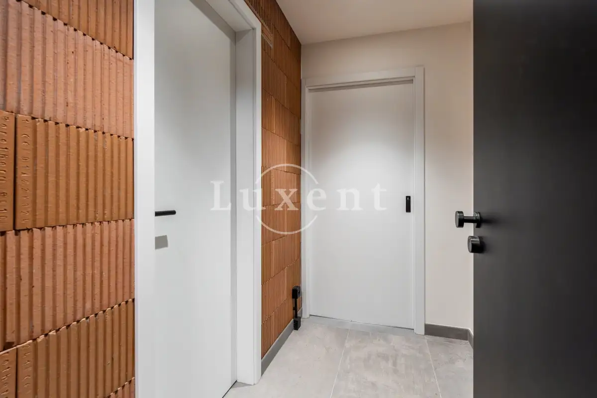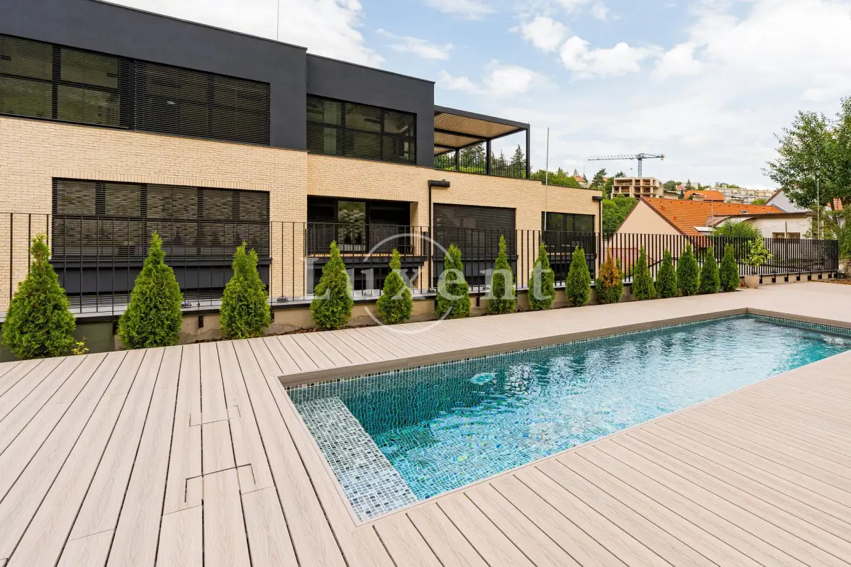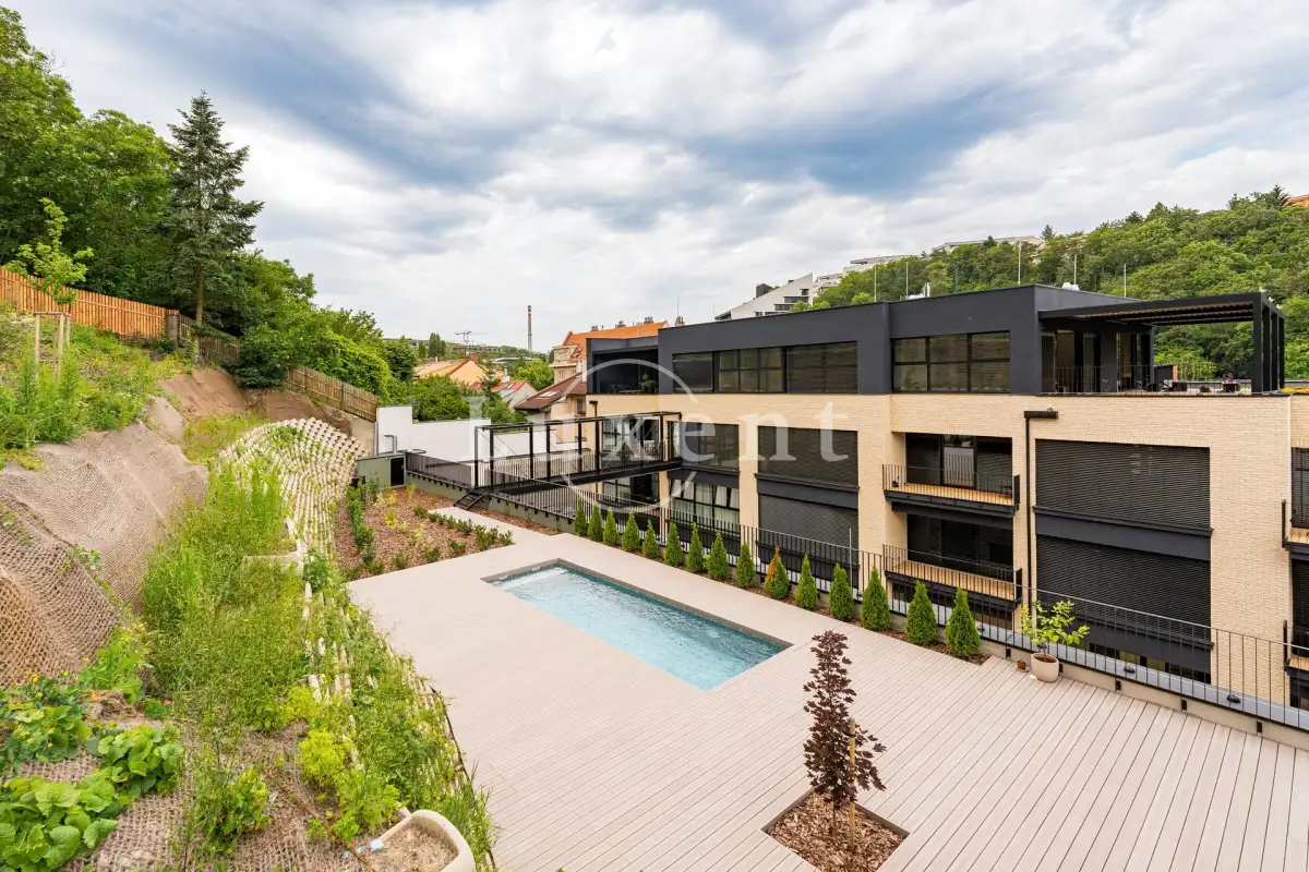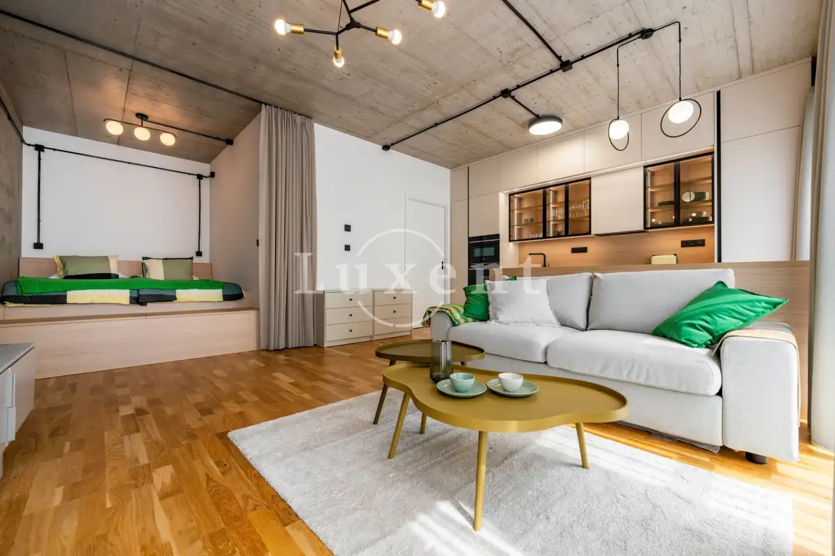 We offer for sale, completely and luxuriously furnished apartment 1+kt in Residence Garden Lofts. The apartment with a total usable area of 44 sqm is situated on the 3rd floor, with elevator and part of this exclusive residence is a garden with outdoor pool.