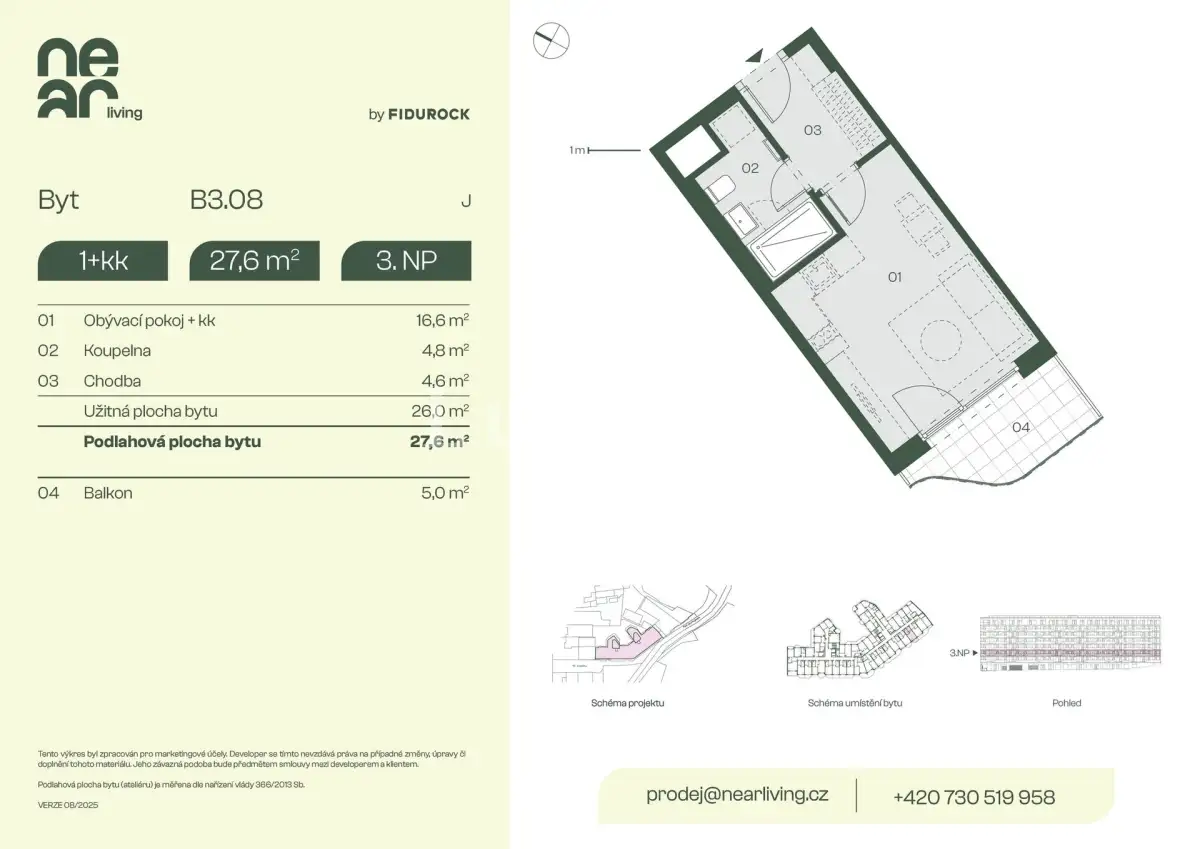 | NL-B404 | 1 + kitchenette | 3rd floor | 26 m2 | 28 m2 | No / 6 m2 / No | No | 6 738 000 CZK | Detail |