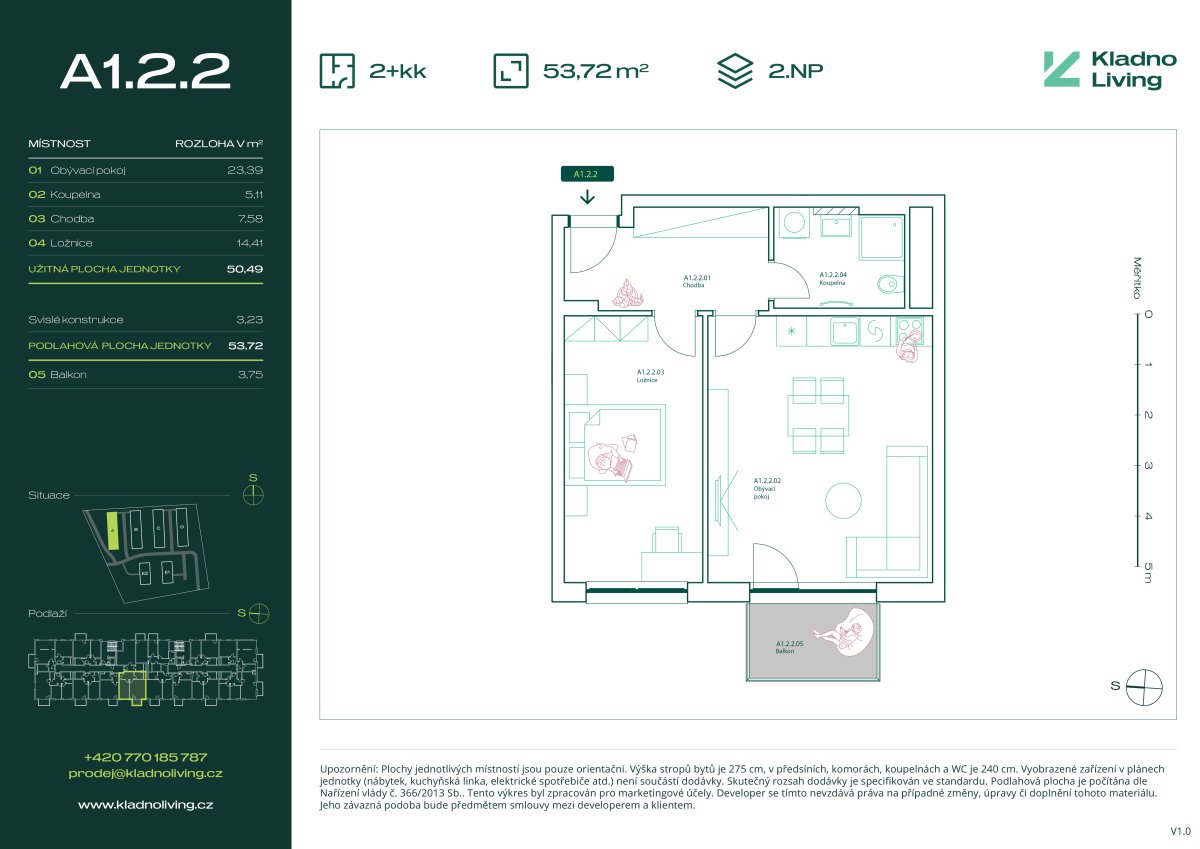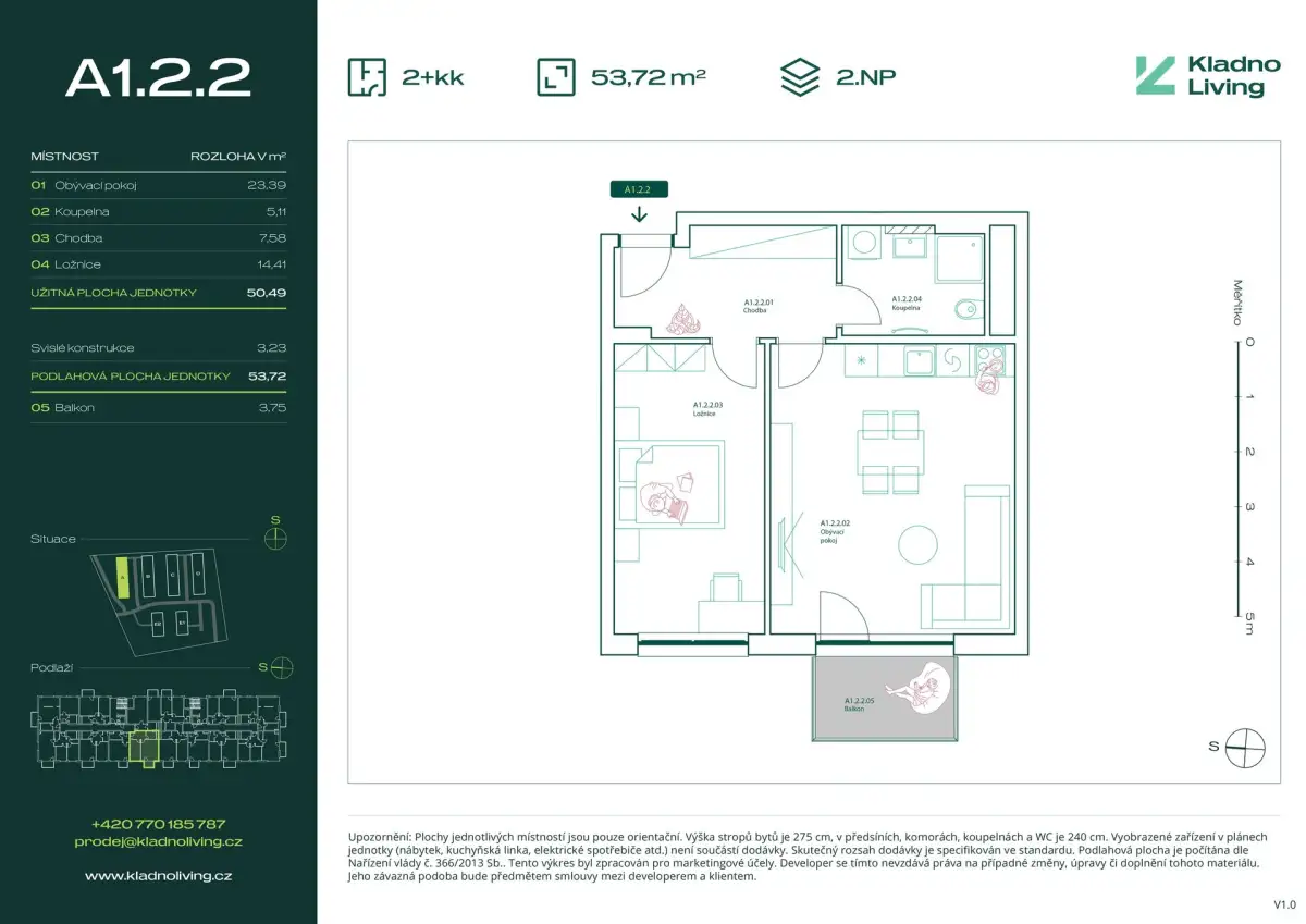 | KL-B125 | 2 + kitchenette | 1st floor | 50 m2 | 54 m2 | No / 5 m2 / No | No | 5 880 000 CZK | Detail |