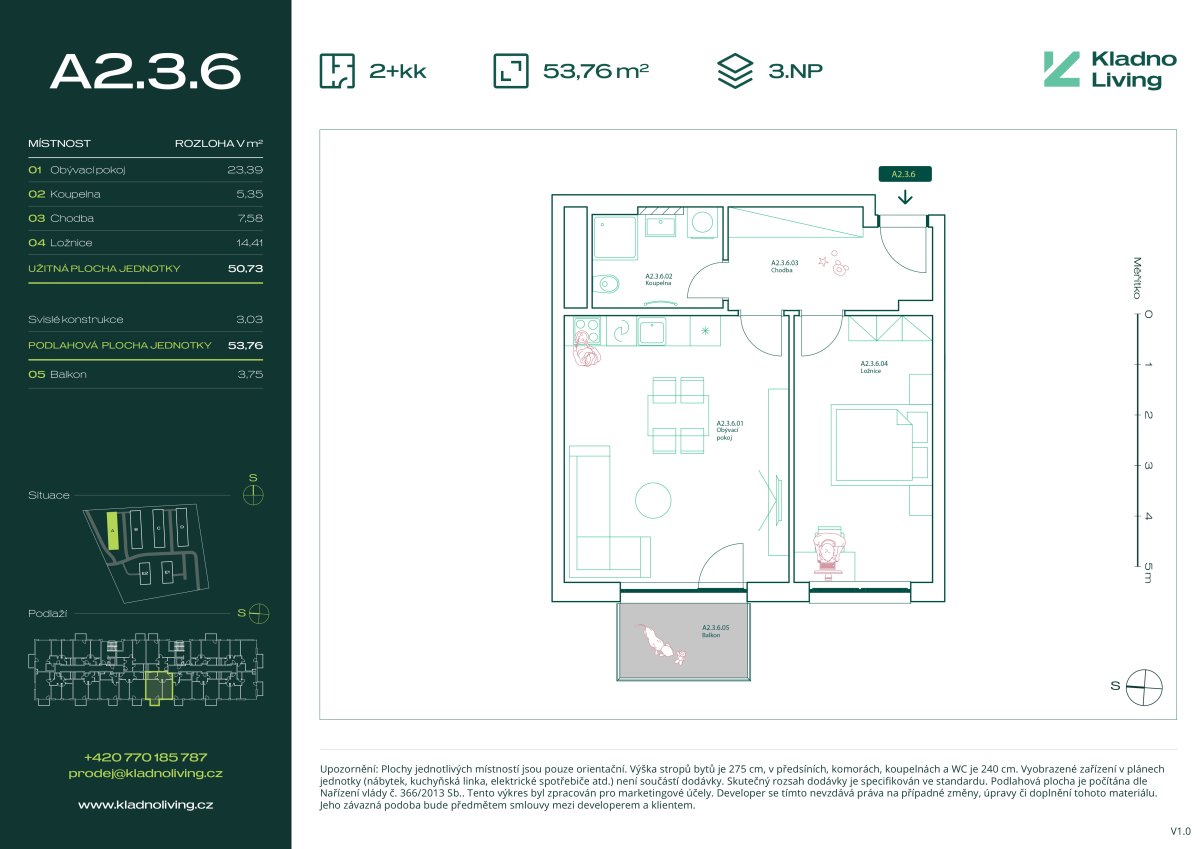 | KL-A233 | 3 + kitchenette | 2nd floor | 71 m2 | 76 m2 | No / 6 m2 / No | No | 7 800 000 CZK | Detail |