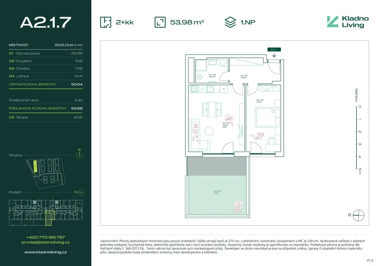 We are offering for sale a modern apartment 2+kt with a floor area of 54 sqm and a terrace of 21,2 sqm in the Kladno Living residential project, which is being built in one of the most attractive locations in the city of Kladno – Kročehlavy. This new development project represents a unique opportunity for those looking for new apartments in Kladno or an investment in real estate with high appreciation potential.