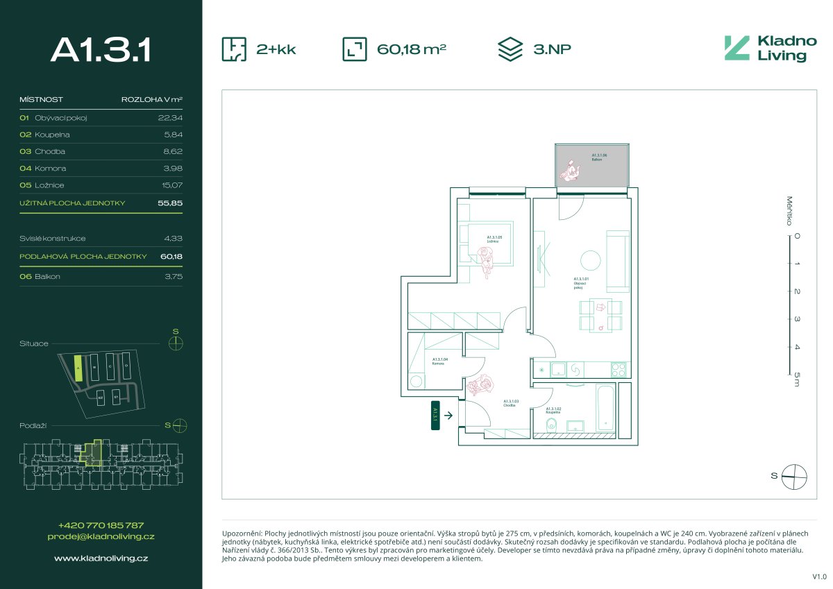 | KL-B126 | 1 + kitchenette | 1st floor | 36 m2 | 38 m2 | No / 3 m2 / No | No | 4 580 000 CZK | Detail |