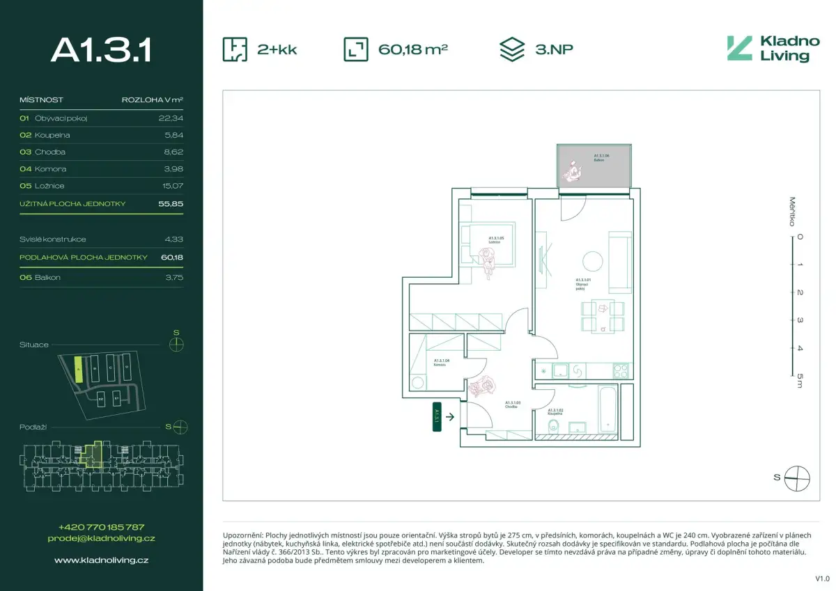 We are offering for sale a modern apartment 2+kt with a floor area of 60,2 sqm and a balcony of 3,8 sqm in the Kladno Living residential project, which is being built in one of the most attractive locations in the city of Kladno – Kročehlavy. This new development project represents a unique opportunity for those looking for new apartments in Kladno or an investment in real estate with high appreciation potential.