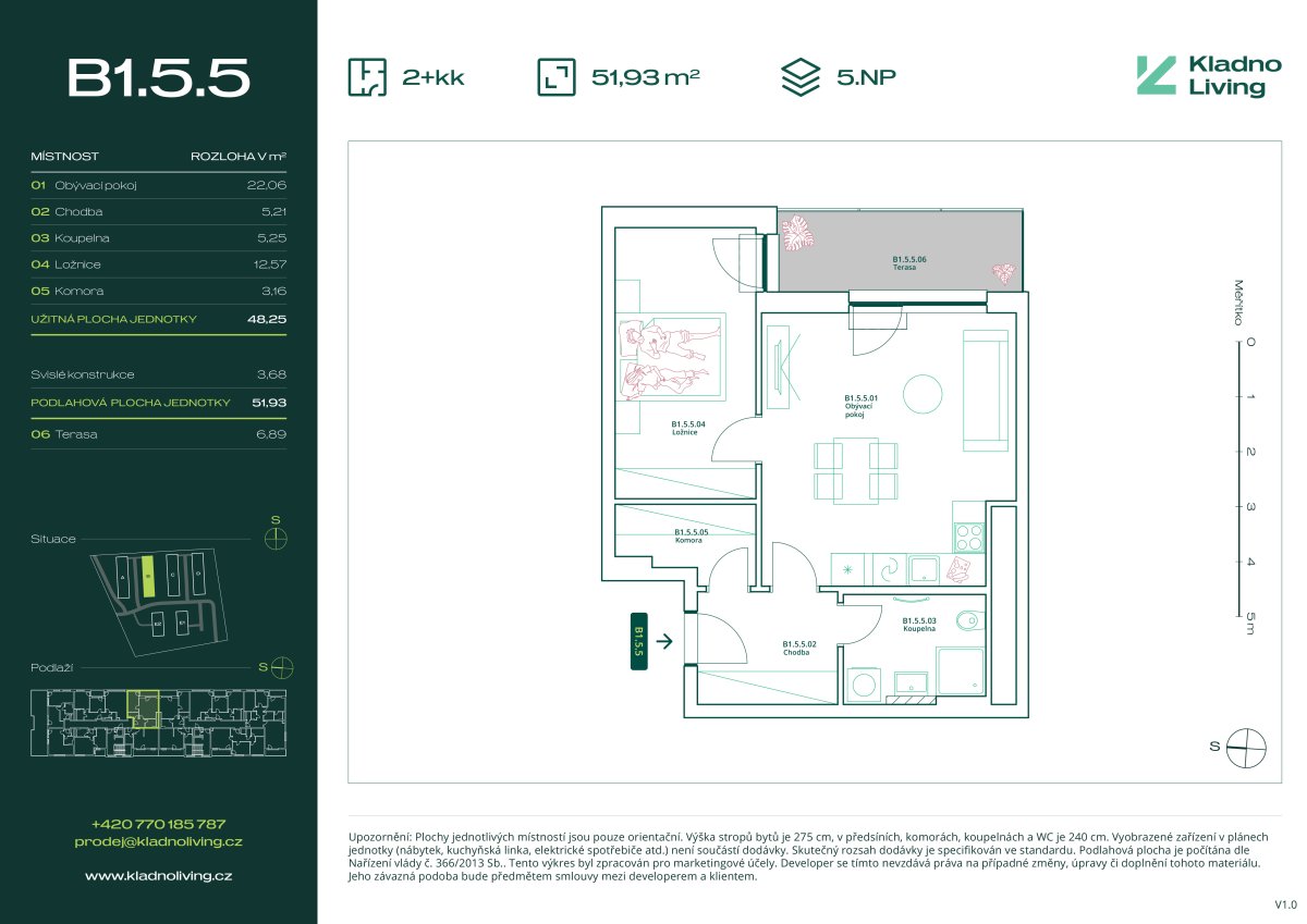 We are offering for sale a modern apartment 2+kt with a floor area of 51,9 sqm and a balcony of 6,9 sqm in the Kladno Living residential project, which is being built in one of the most attractive locations in the city of Kladno – Kročehlavy. This new development project represents a unique opportunity for those looking for new apartments in Kladno or an investment in real estate with high appreciation potential.