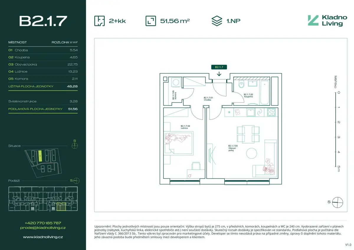 We are offering for sale a modern apartment 2+kt with a floor area of 51,6 sqm in the Kladno Living residential project, which is being built in one of the most attractive locations in the city of Kladno – Kročehlavy. This new development project represents a unique opportunity for those looking for new apartments in Kladno or an investment in real estate with high appreciation potential.