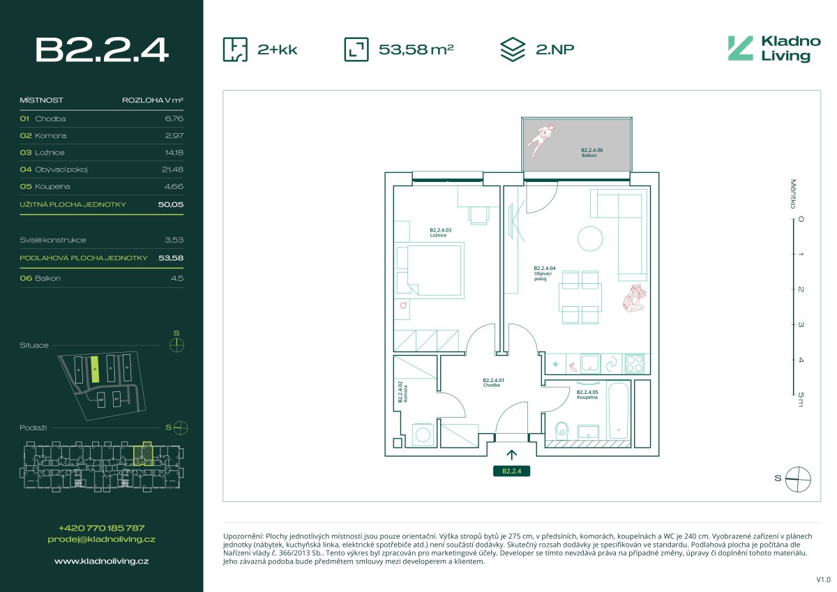 | KL-A122 | 2 + kitchenette | 1st floor | 50 m2 | 54 m2 | No / 4 m2 / No | No | Reserved | Detail |