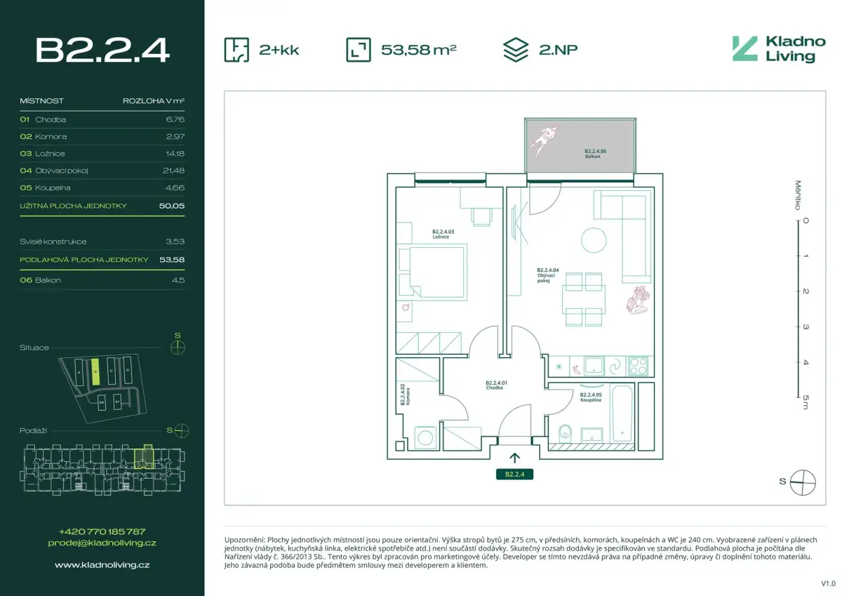 | KL-B224 | 2 + kitchenette | 1st floor | 50 m2 | 54 m2 | No / 5 m2 / No | No | 5 880 000 CZK | Detail |