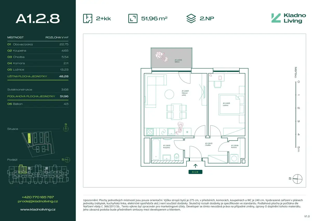 | KL-A128 | 2 + kitchenette | 1st floor | 48 m2 | 52 m2 | No / 5 m2 / No | No | Reserved | Detail |