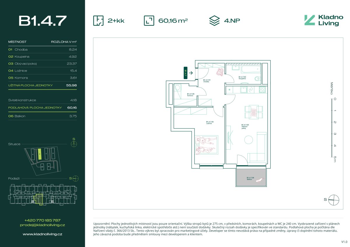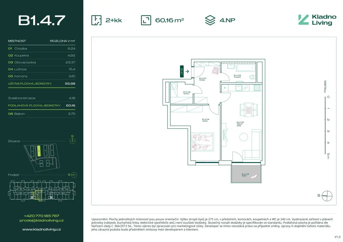We are offering for sale a modern apartment 2+kt with a floor area of 60,2 sqm and a balcony of 3,8 sqm in the Kladno Living residential project, which is being built in one of the most attractive locations in the city of Kladno – Kročehlavy. This new development project represents a unique opportunity for those looking for new apartments in Kladno or an investment in real estate with high appreciation potential.