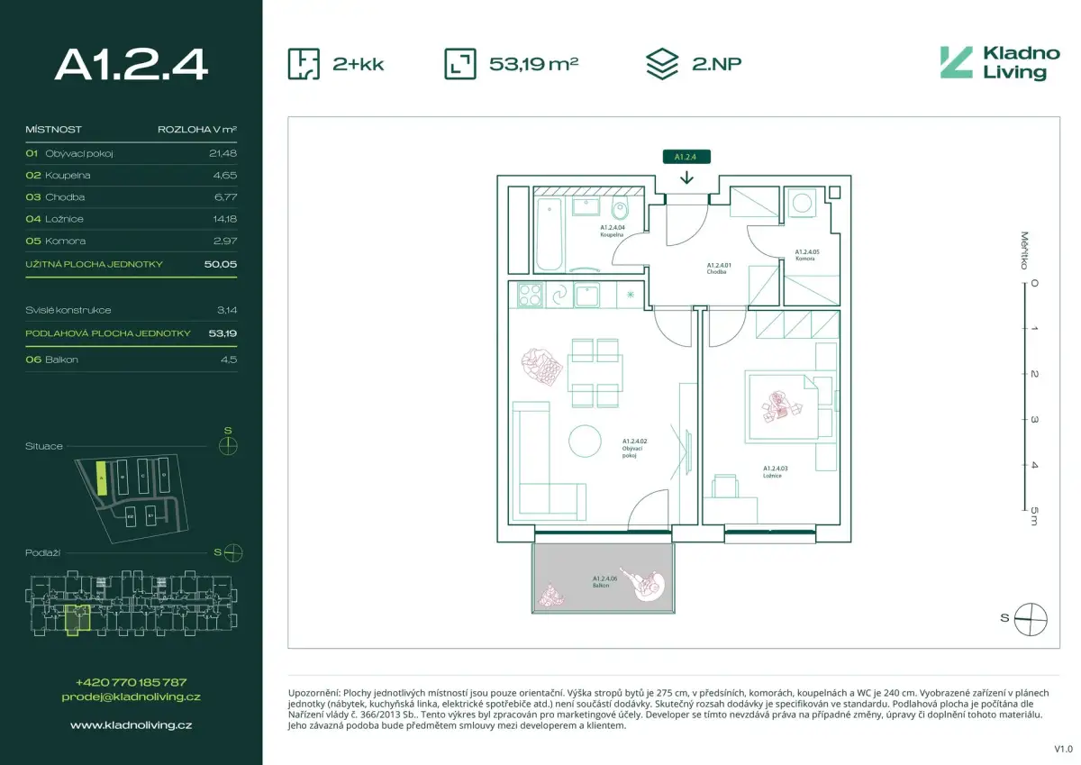 | KL-A124 | 2 + kitchenette | 1st floor | 50 m2 | 53 m2 | No / 5 m2 / No | No | Reserved | Detail |