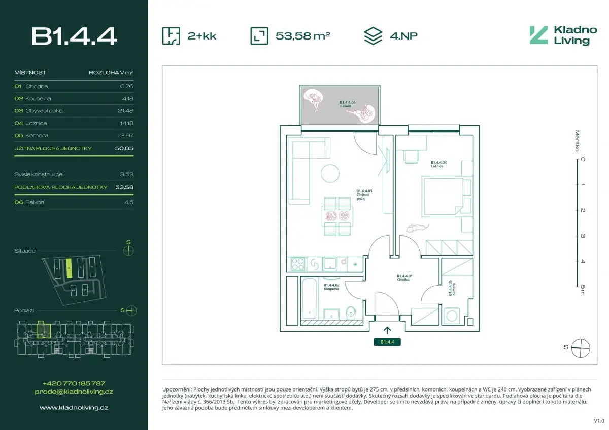 We are offering for sale a modern apartment 2+kt with a floor area of 53,6 sqm and a balcony of 4,5 sqm in the Kladno Living residential project, which is being built in one of the most attractive locations in the city of Kladno – Kročehlavy. This new development project represents a unique opportunity for those looking for new apartments in Kladno or an investment in real estate with high appreciation potential.