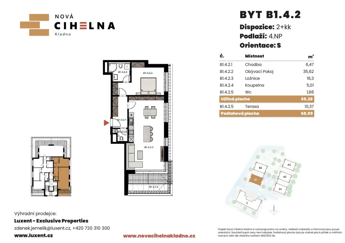| NC-B124 | 3 + kitchenette | 1st floor | 62 m2 | 65 m2 | No / 12 m2 / No | No | Reserved | Detail |