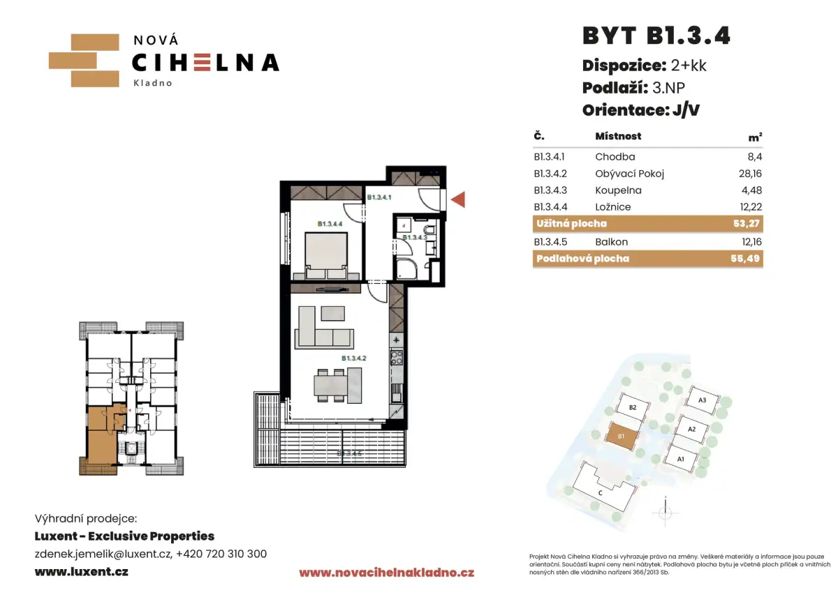 | NC-B234 | 2 + kitchenette | 2nd floor | 53 m2 | 55 m2 | No / 12 m2 / No | No | Reserved | Detail |