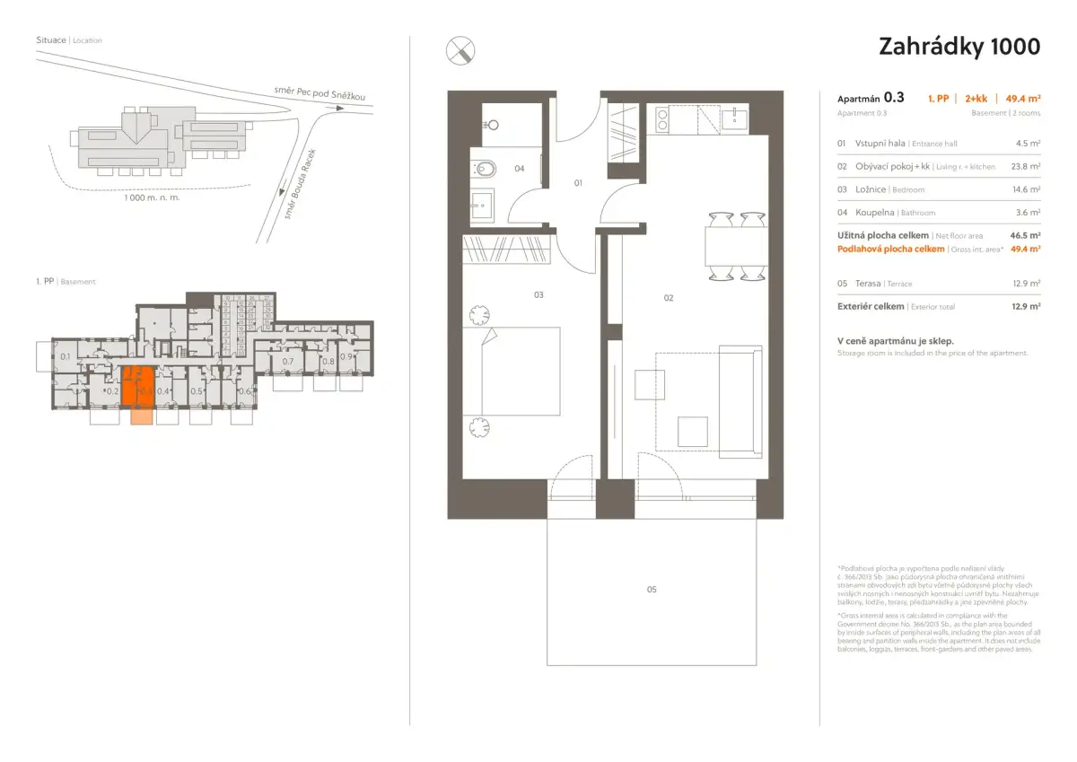 | Z0-4 | 2 + kitchenette | 1st underground floor | 46 m2 | 49 m2 | 13 m2 / No / No | No | on request | Detail |