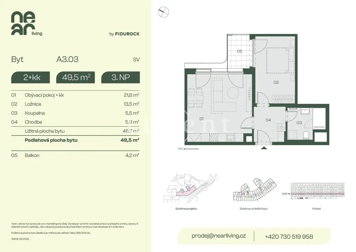We are offering for sale a 2+kt apartment with a floor area of 49.5 sqm and a 4.2 sqm balcony in the NEAR living development project in Prague 8, located on the border between Palmovka and Karlín.