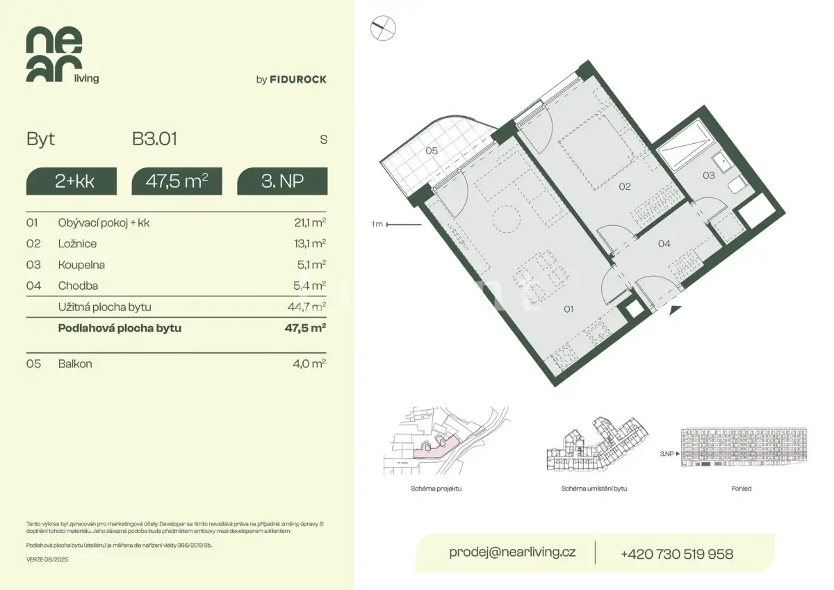 We offer for sale a 2+kt apartment with a floor area of 47.5 sqm and a 4 sqm balcony in the NEAR living development project in Prague 8, located on the border between Palmovka and Karlín.