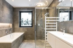 The apartment is equipped with efficient ventilation, underfloor heating, and a modern air-to-air heat pump. It also includes a personal elevator, basement storage, and high-quality blinds. An underground parking space is included in the price, ensuring convenient and secure parking.