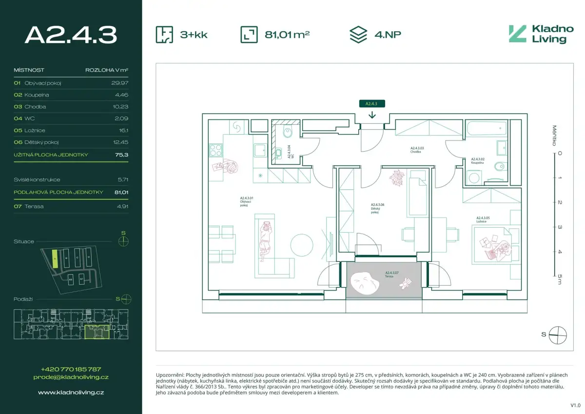 | KL-B253 | 3 + kitchenette | 4th floor | 75 m2 | 81 m2 | 5 m2 / No / No | No | 8 830 000 CZK | Detail |