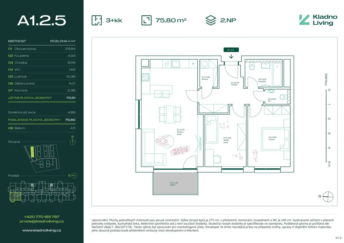 | KL-A125 | 3 + kitchenette | 1st floor | 71 m2 | 76 m2 | No / 5 m2 / No | No | 7 680 000 CZK | Detail |