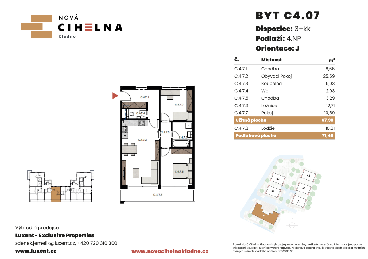 | NC-C401 | 3 + kitchenette | 3rd floor | 71 m2 | 75 m2 | No / 13 m2 / No | No | 8 203 280 CZK | Detail |