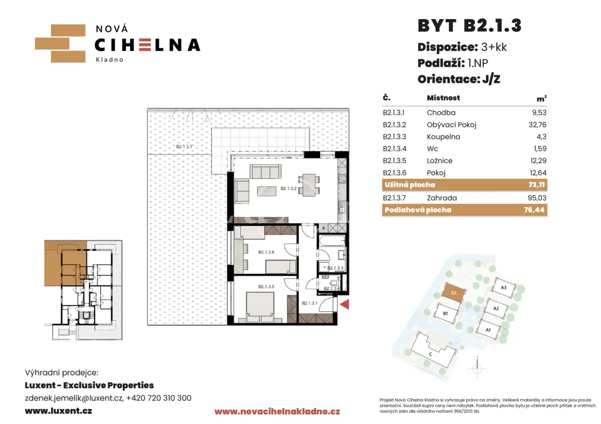 | NC-B113 | 3 + kitchenette | ground floor | 73 m2 | 76 m2 | No / No / No | Yes (58 m2) | Reserved | Detail |