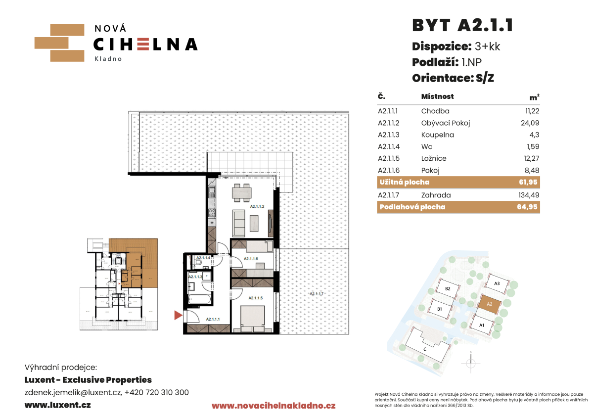 | NC-A111 | 3 + kitchenette | ground floor | 62 m2 | 65 m2 | No / No / No | Yes (92 m2) | 7 777 600 CZK | Detail |