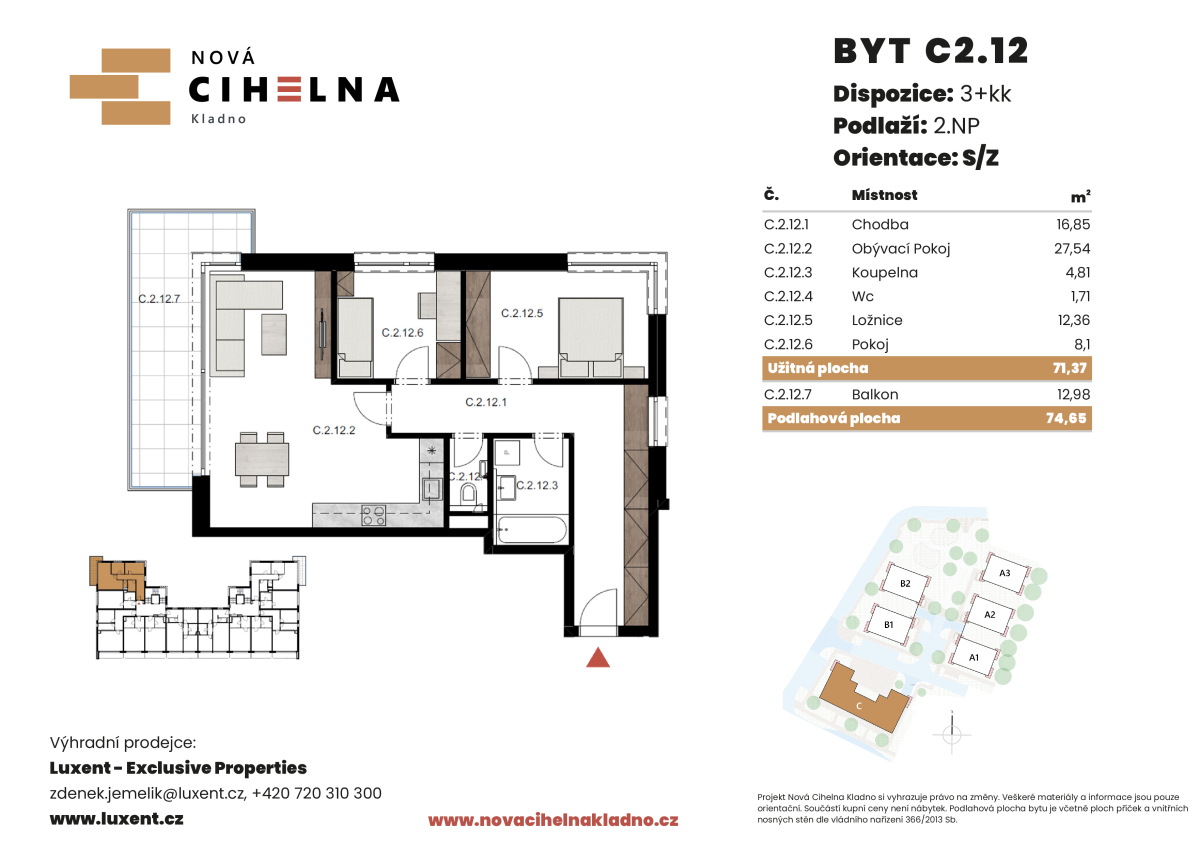| NC-C201 | 3 + kitchenette | 1st floor | 71 m2 | 75 m2 | No / 13 m2 / No | No | Reserved | Detail |