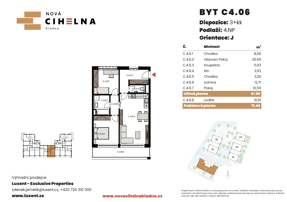 | NC-C406 | 3 + kitchenette | 3rd floor | 68 m2 | 71 m2 | No / No / 11 m2 | No | 8 206 870 CZK | Detail |