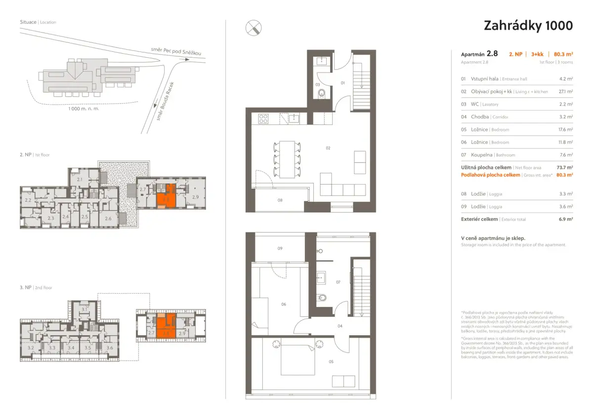 | Z2-8 | 3 + kitchenette | 1st floor | 74 m2 | 80 m2 | No / No / 7 m2 | No | on request | Detail |