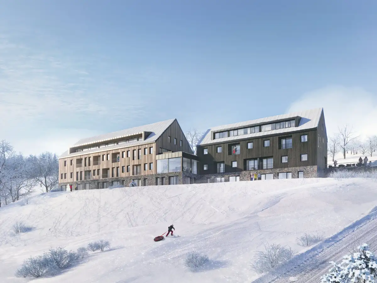 We offer a mountain apartment in a new project in Pec pod Sněžkou. It is a new building of 33 apartments with common facilities in an exceptional location at an altitude of 1000 m above sea level directly on the Zahrádky ski slope. You can get unique opportunities to spend your time in the mountains "in your own" and at the same time invest with a return. The apartments will be professionally managed with the provision of rentals and services (catering, transport, mountain program, etc.). All this is taking shape and you can be there at the very beginning and choose the best apartment for you.