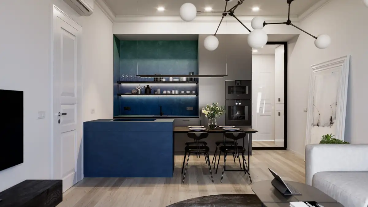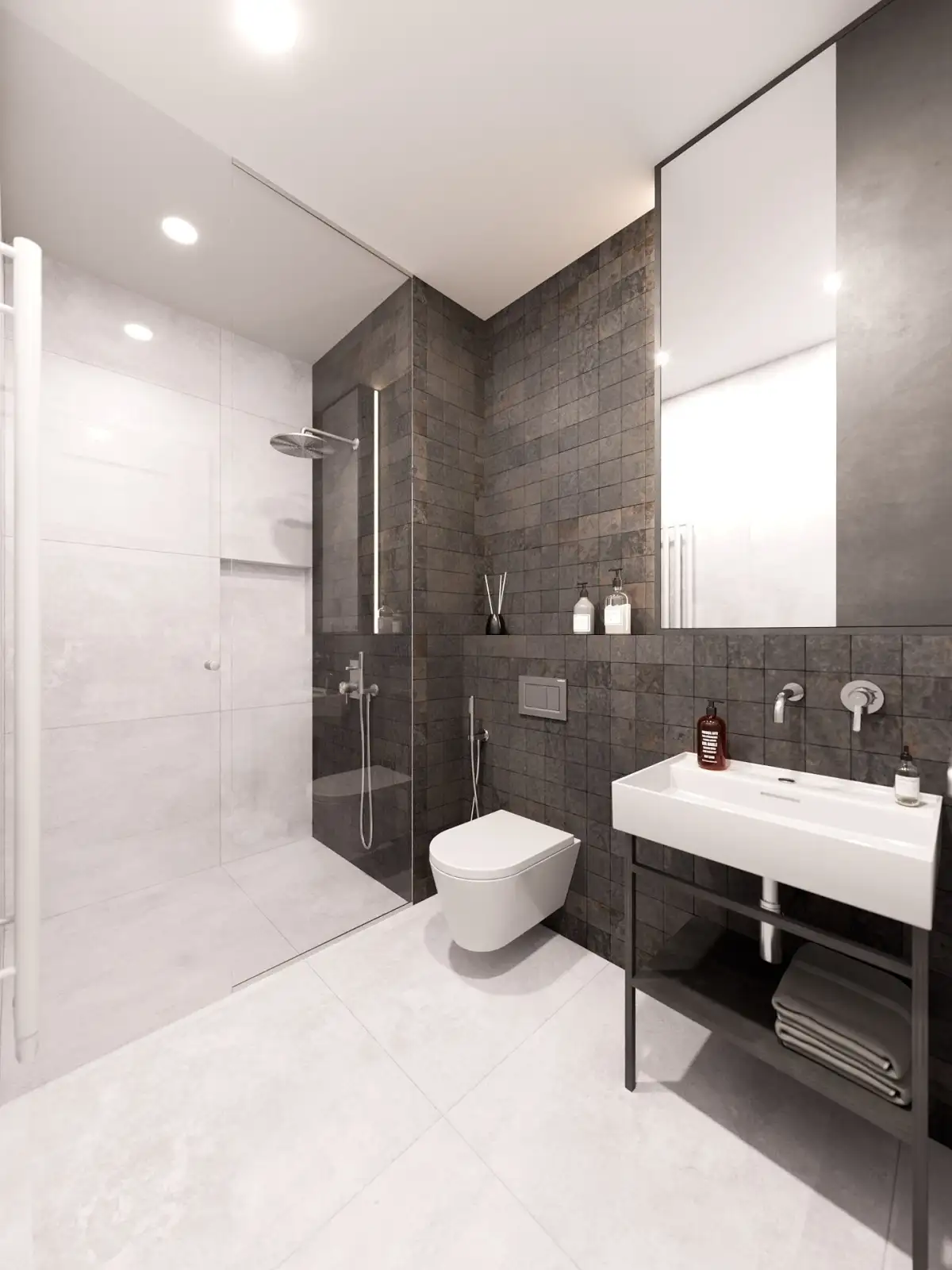 The layout offers an entrance hall, living room with kitchenette, two bedrooms, bathroom and separate toilet. All the offered apartments stand out for their high standard, which includes wooden floors, quality tiles and sanitary ware, lighting and more. Kitchen units and built-in wardrobes can be supplied above the list price.